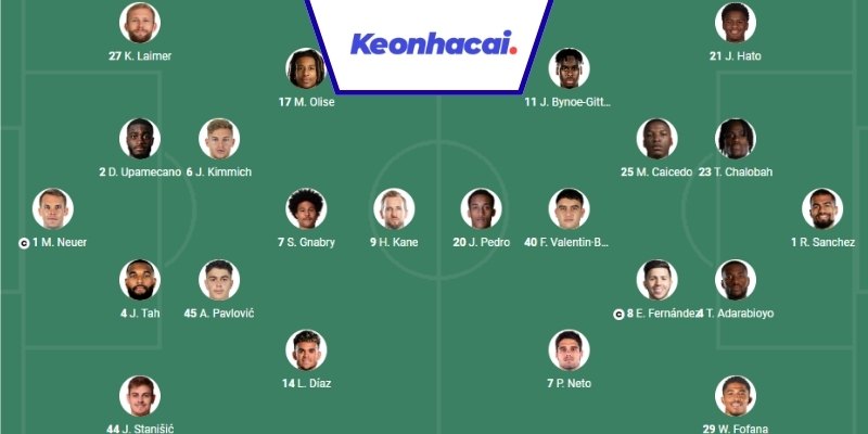 | Cầu thủ ra sân | Neuer, Laimer, Upamecano, Kimmich, Gnabry, Olise, Kane, Pavlović, Tah, Stanišić, Díaz | Sanchez, Chalobah, Fofana, Adarabioyo, Caicedo, Fernández, Pedro, Valentin-Bassi, Hato, Bynoe-Gittens, Kane |