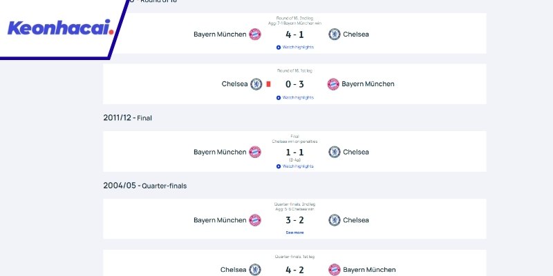 Lịch sử chạm trán Bayern Munich vs Chelsea những trận gần nhất
