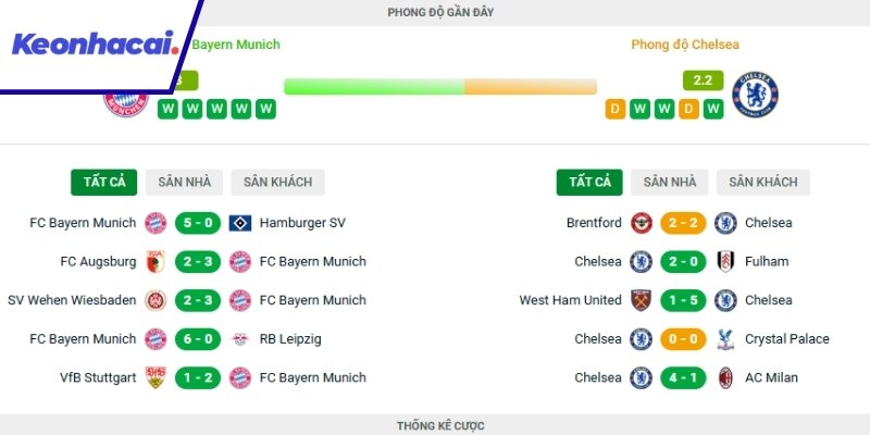 Khám phá phong độ gần đây của Munich và Chelsea