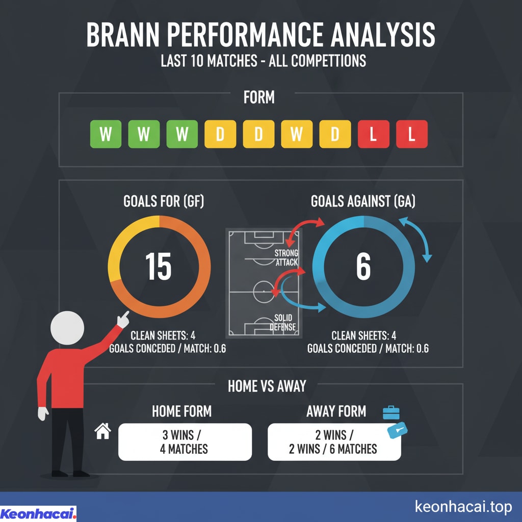 Trong 10 trận gần nhất trên mọi đấu trường, Brann giành được 5 chiến thắng, hòa 3 trận và chỉ để thua 2. Đáng chú ý, hàng thủ của Brann thi đấu khá chắc chắn khi chỉ để thủng lưới 6 bàn trong 10 trận này, đồng thời giữ sạch lưới trong 4 trận. Hiệu suất ghi bàn của họ cũng ở mức khá với 15 bàn thắng. Phong độ sân nhà của Brann rất đáng tin cậy với 3 chiến thắng trong 4 trận gần nhất tại tổ ấm, cho thấy họ là một đối thủ khó chịu khi được thi đấu tại sân nhà. Người hâm mộ cũng có thể tham khảo thêm các bài phân tích chuyên sâu khác như Soi kèo Panathinaikos vs Plzen để có cái nhìn tổng quan hơn về các trận đấu khác tại châu Âu.