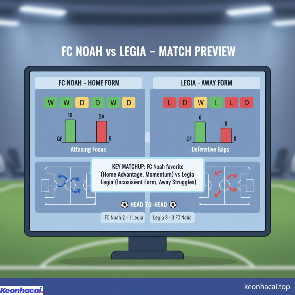 Bài viết này sẽ đi sâu vào nhận định FC Noah vs Legia dựa trên phân tích phong độ gần đây, lịch sử đối đầu (nếu có), cùng với việc soi kèo FC Noah vs Legia chi tiết các loại kèo châu Á, kèo châu Âu và kèo tài xỉu, từ đó đưa ra những dự đoán khách quan nhất về kết quả trận đấu.