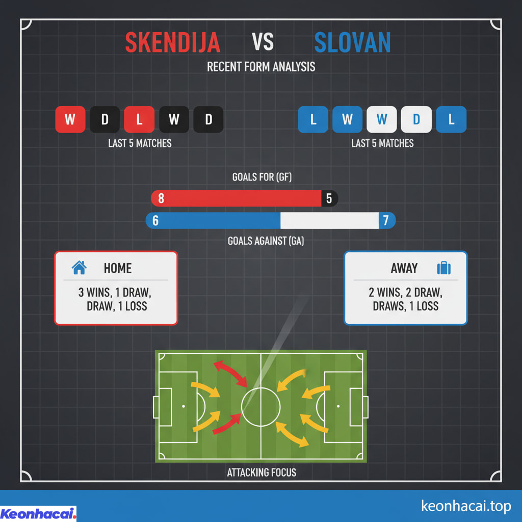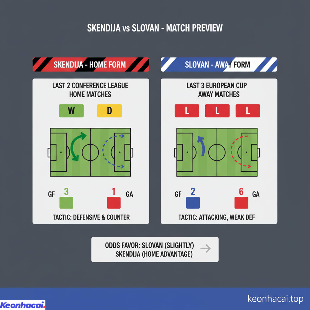 Dựa trên phân tích phong độ, Skendija có lợi thế sân nhà đáng kể. Họ đã thể hiện khá ổn định trên sân nhà ở Conference League gần đây với 1 thắng, 1 hòa. Ngược lại, Slovan đang trải qua chuỗi trận sân khách đáng thất vọng, khi để thua liên tiếp 3 trận gần nhất tại các giải đấu cúp châu Âu. Mặc dù Slovan có vẻ được đánh giá cao hơn một chút về chất lượng đội hình tổng thể dựa trên tỷ lệ kèo ban đầu, nhưng yếu tố sân bãi và tinh thần thi đấu của Skendija hoàn toàn có thể tạo nên sự khác biệt.